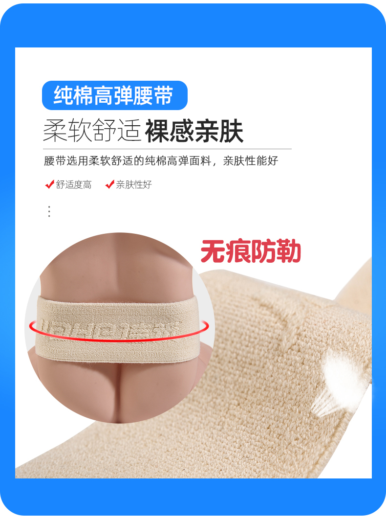 腰帶選用柔軟舒適的純棉高彈面料,親膚性能好