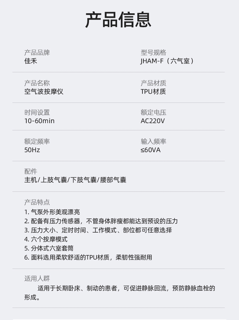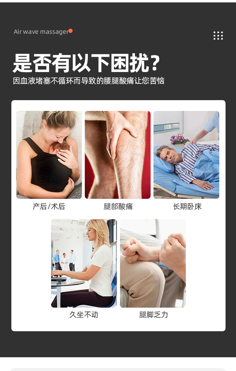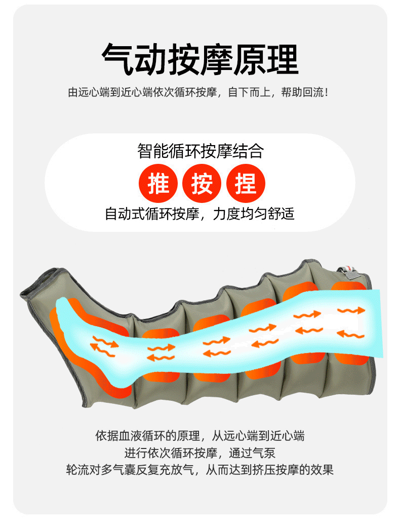 適用于長(zhǎng)期臥床、制動(dòng)的患者,可促進(jìn)靜脈回流,預(yù)防靜脈血栓的形成。