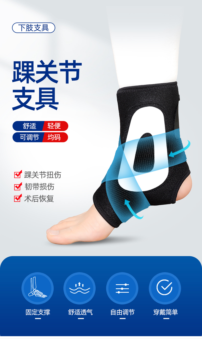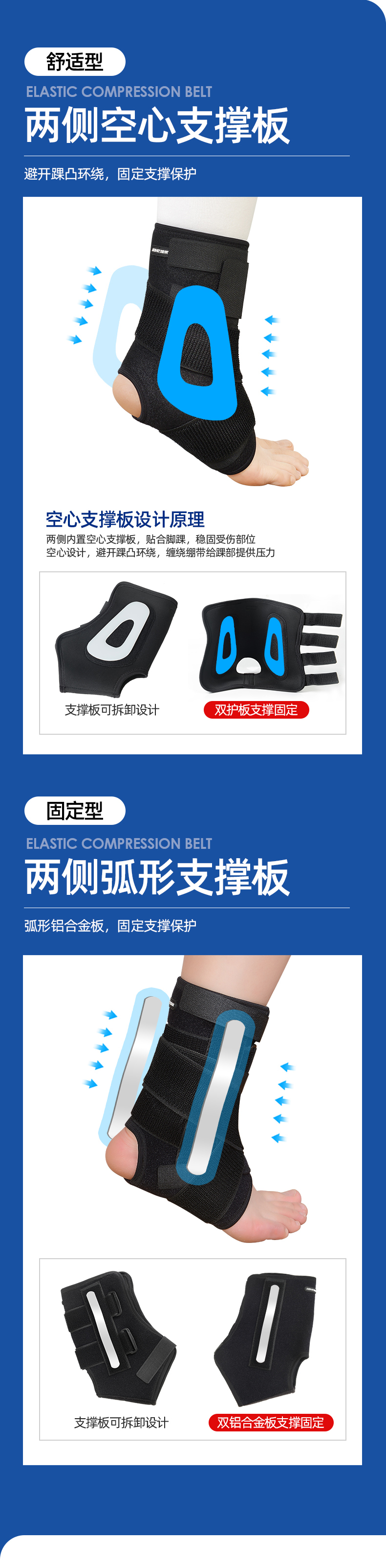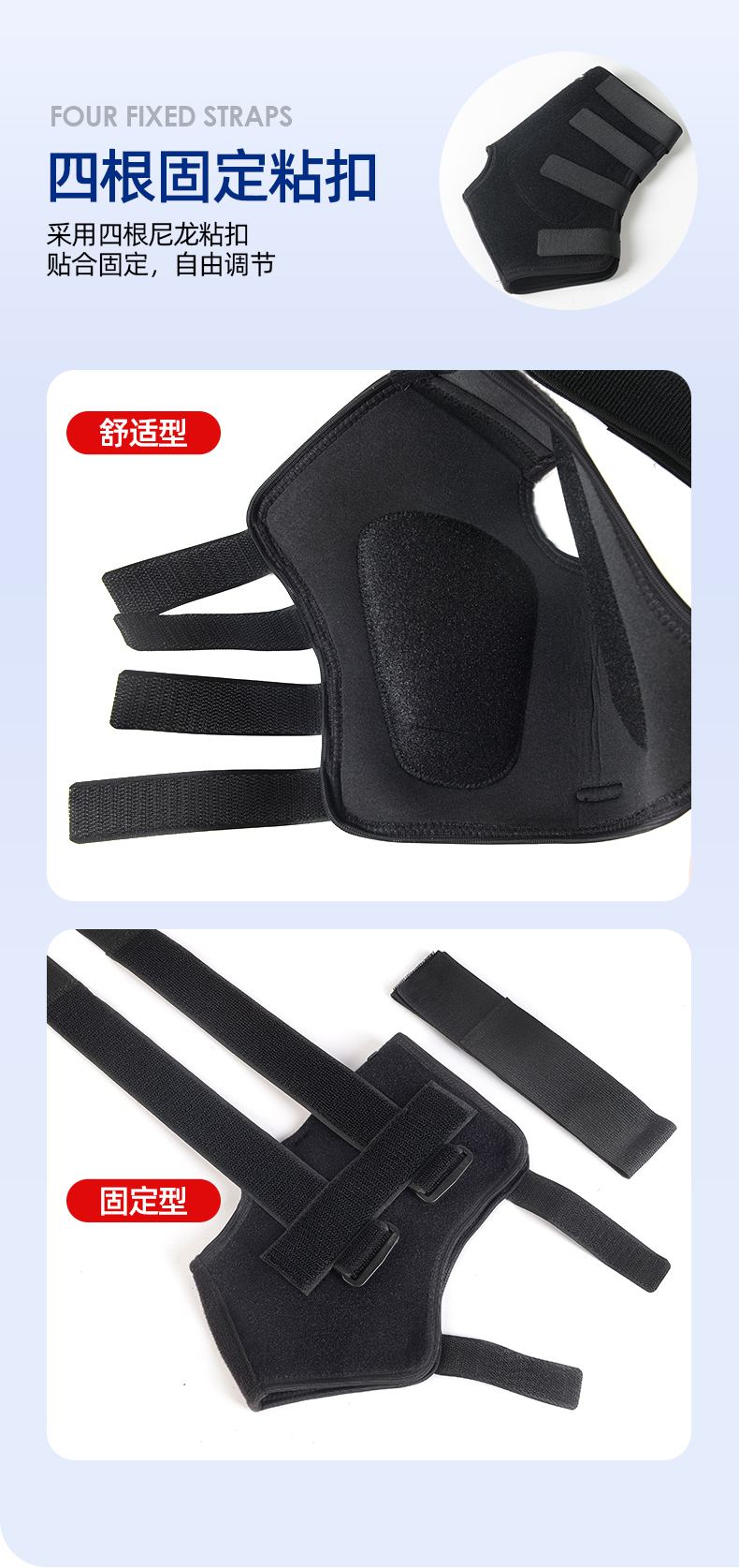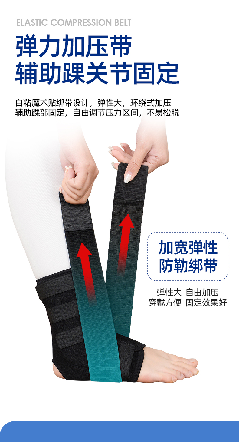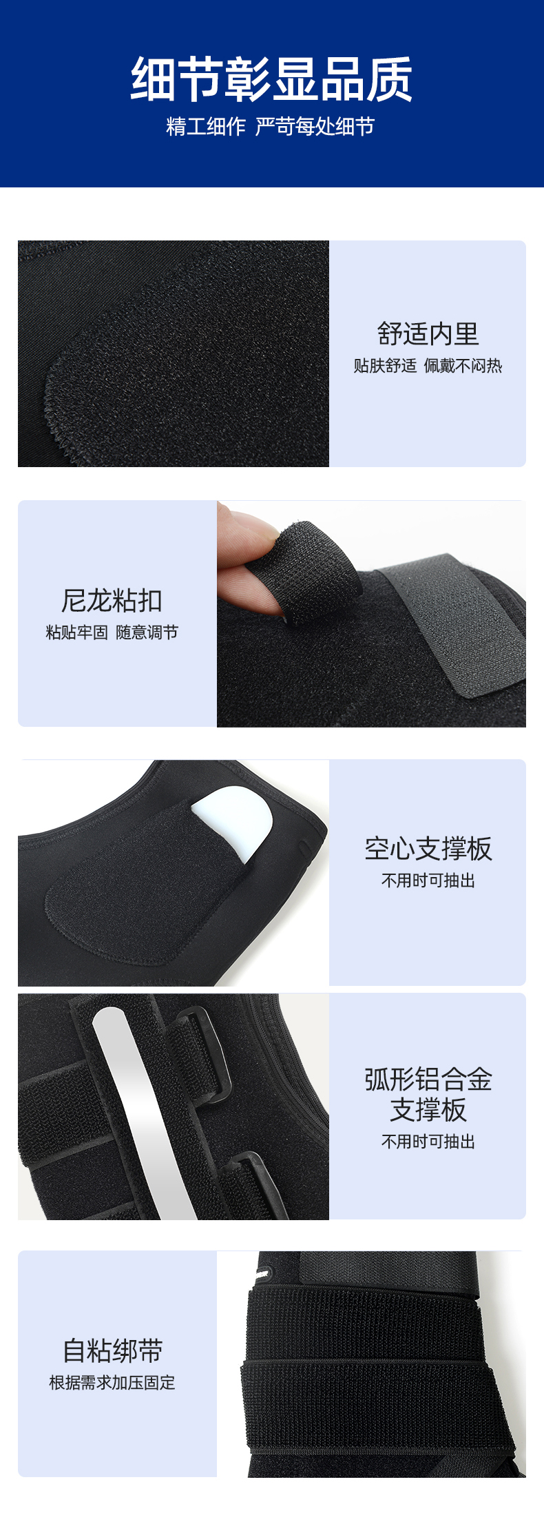 3、固定型:兩側(cè)內(nèi)置鋁合金支撐板,外置兩根尼龍粘扣綁帶,能代替石膏,支撐固定;