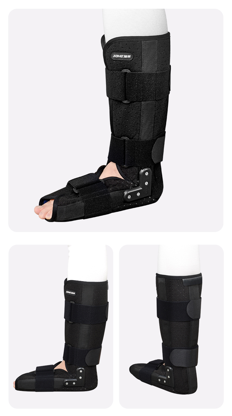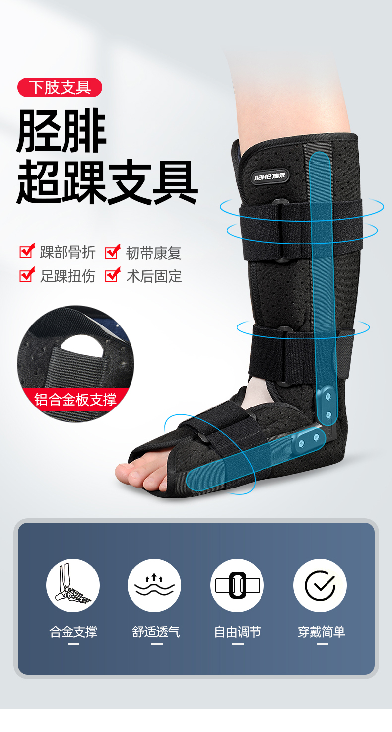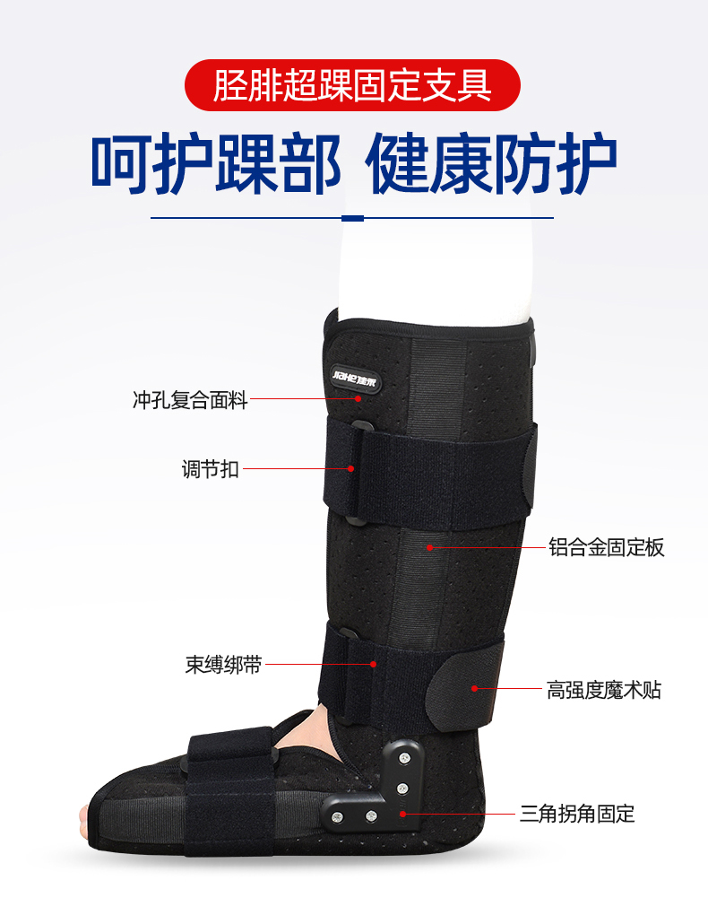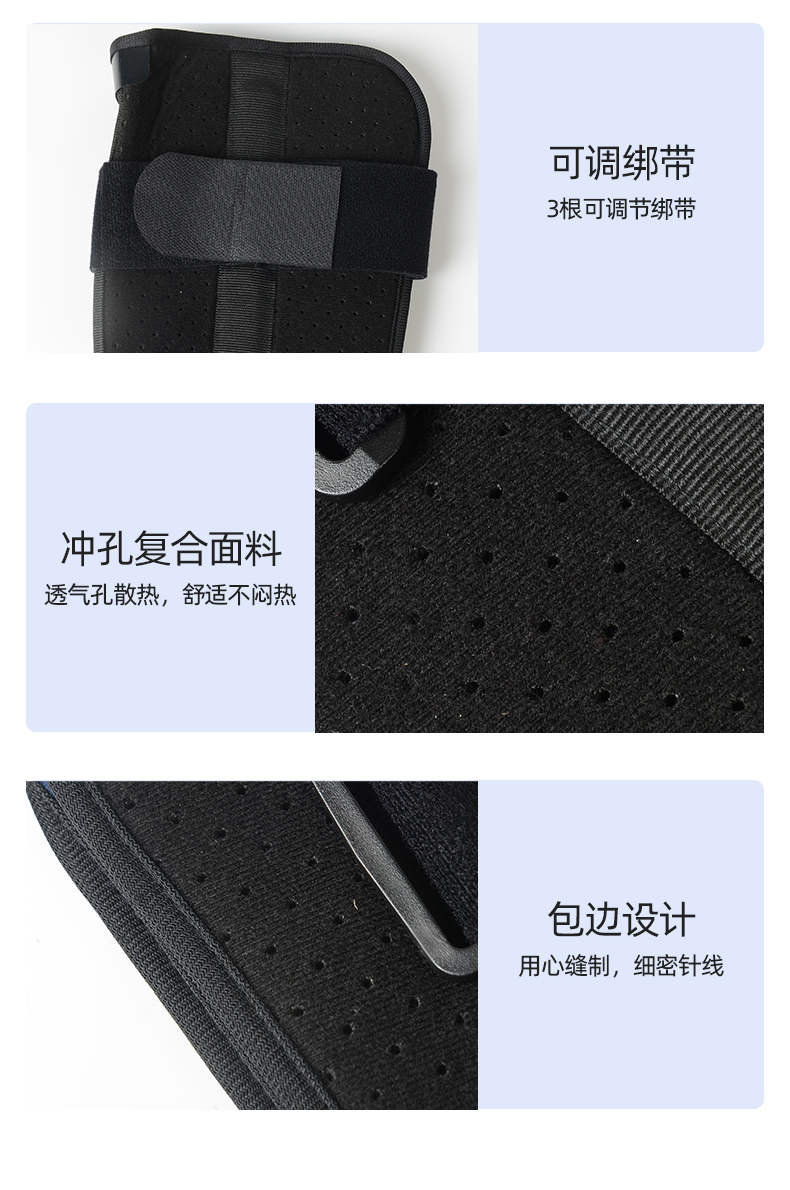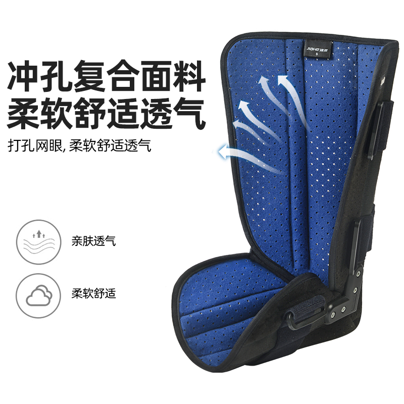 2、內(nèi)置鋁合金支撐板,三角拐角固定,使踝關(guān)節(jié)呈現(xiàn)90度支撐減壓