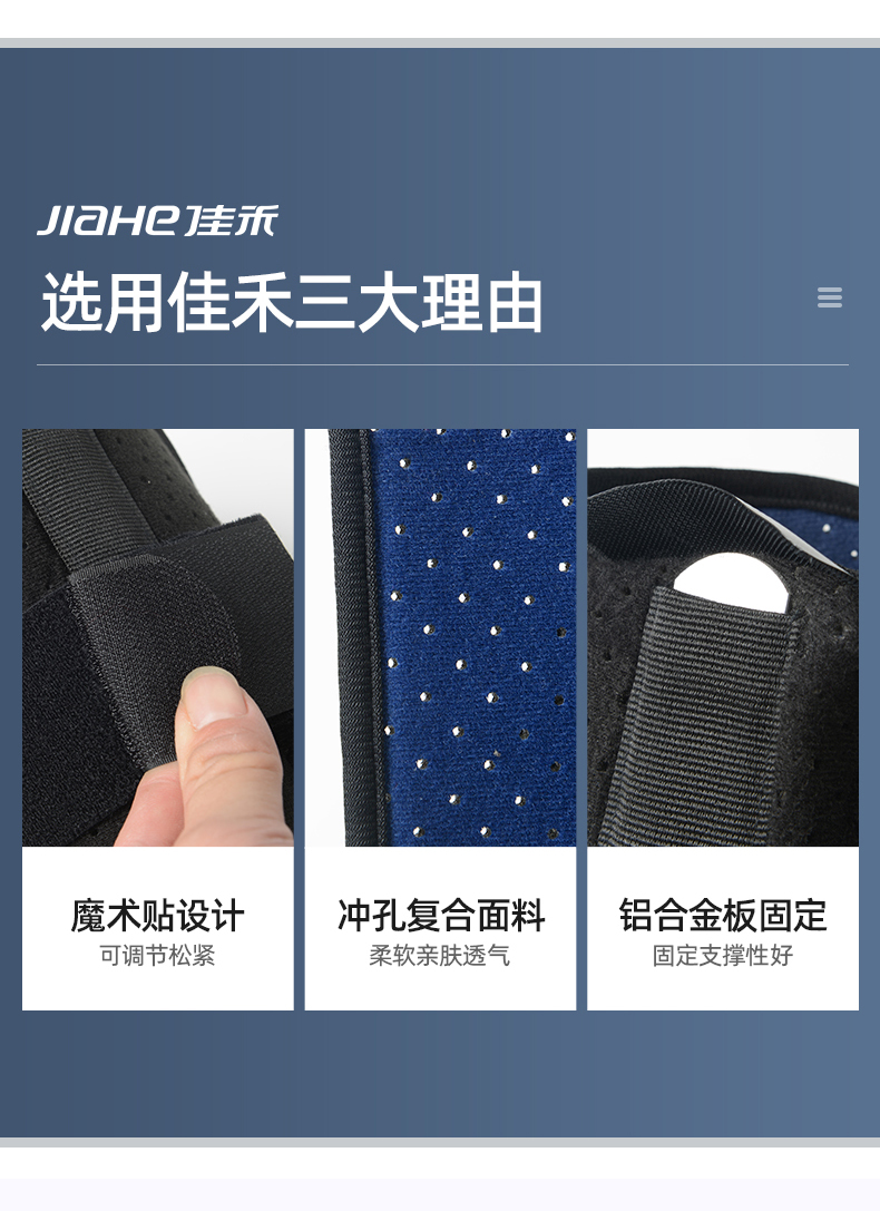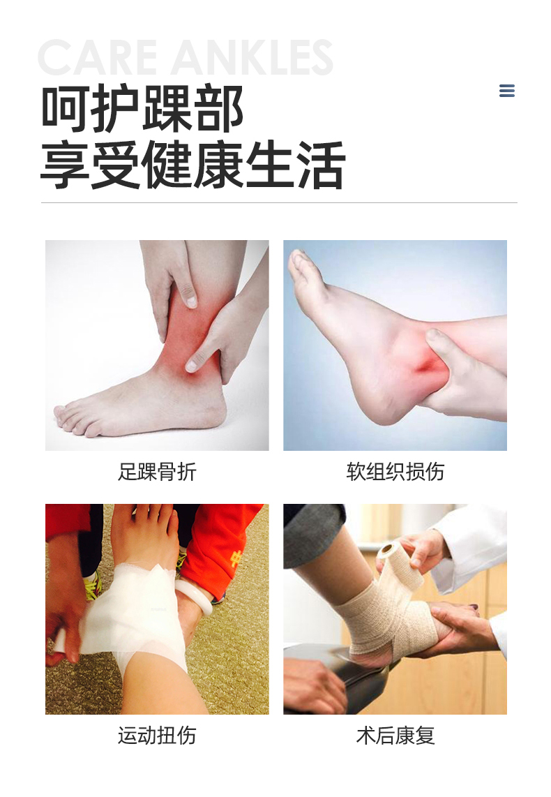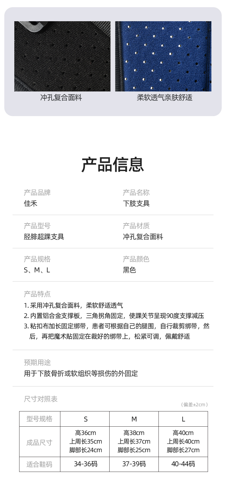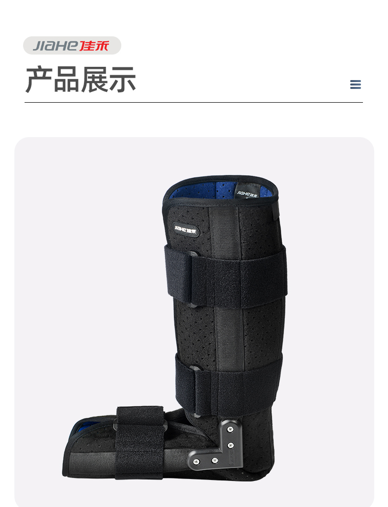 2、內(nèi)置鋁合金支撐板,三角拐角固定,使踝關(guān)節(jié)呈現(xiàn)90度支撐減壓