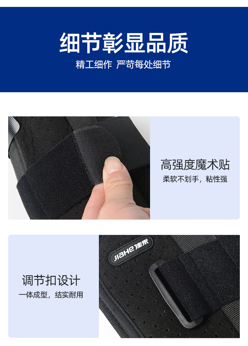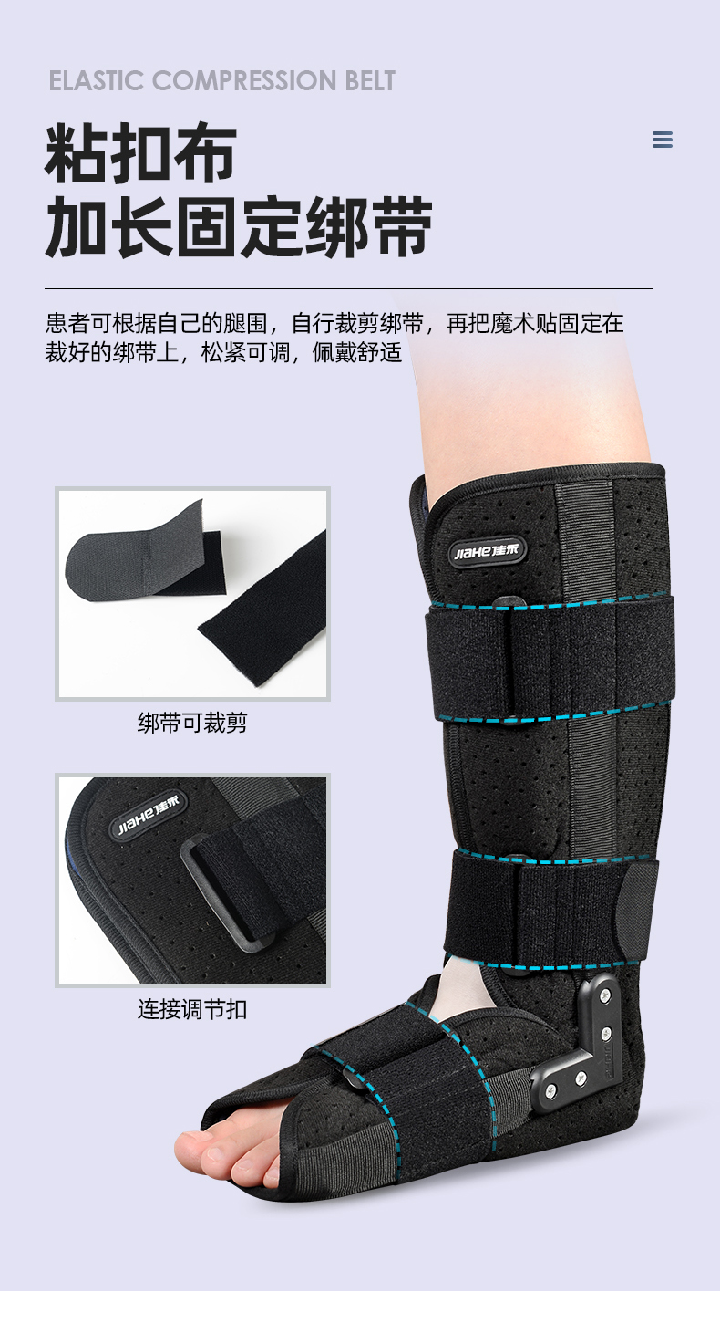 3、粘扣布加長固定綁帶,患者可根據(jù)自己的腿圍,自行裁剪綁帶,然后,再把魔術(shù)貼固定在裁好的綁帶上,松緊可調(diào),佩戴舒適