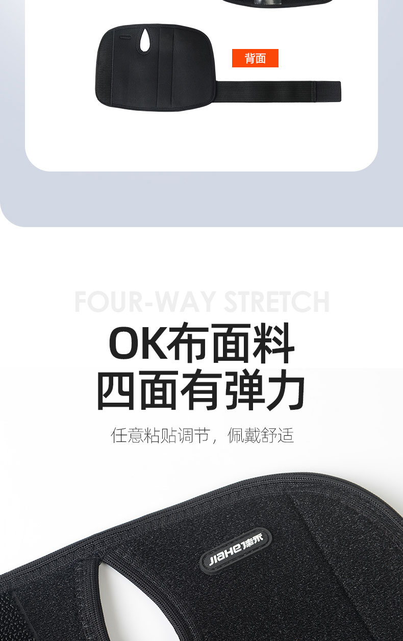 1、采用OK布,四面有彈力,任意粘接、調(diào)節(jié)、佩戴舒適、合適;