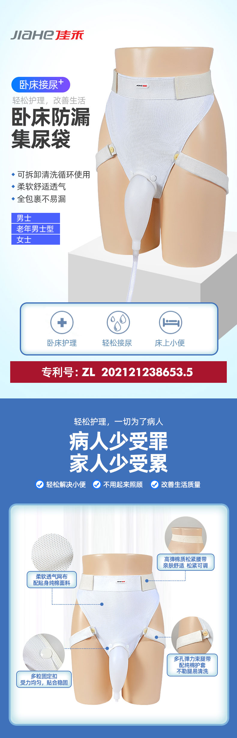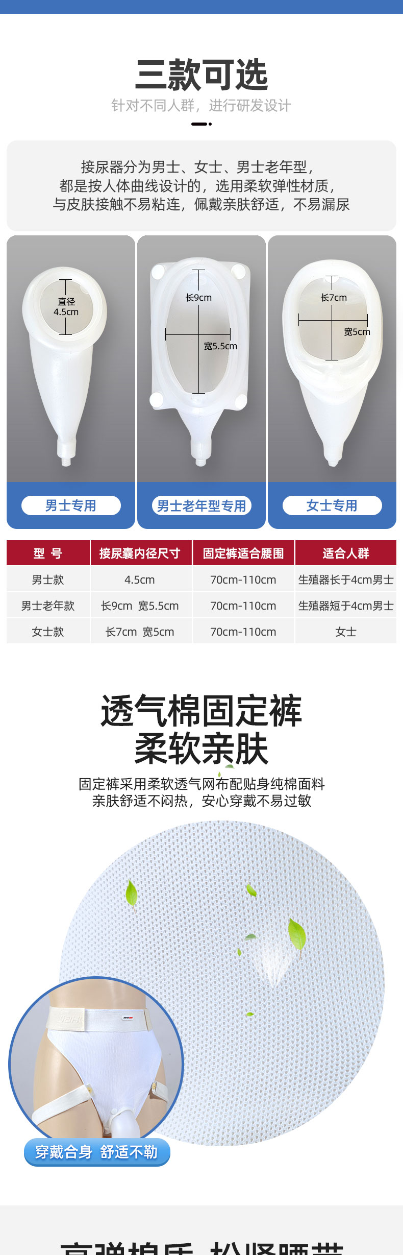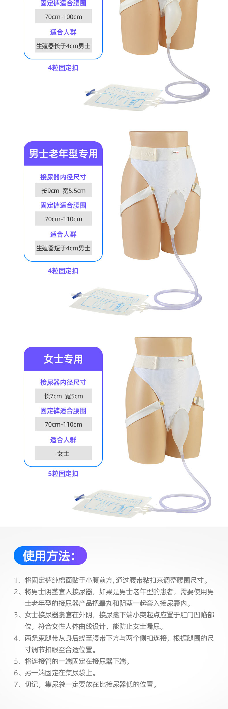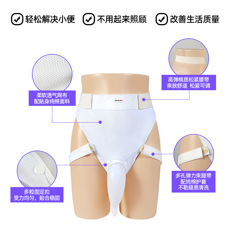 接尿器分為男士、女士、男士老年型,都是按人體曲線設(shè)計(jì)的,選用柔軟彈性材質(zhì),與皮膚接觸不易粘連,佩戴親膚舒適,不易漏尿