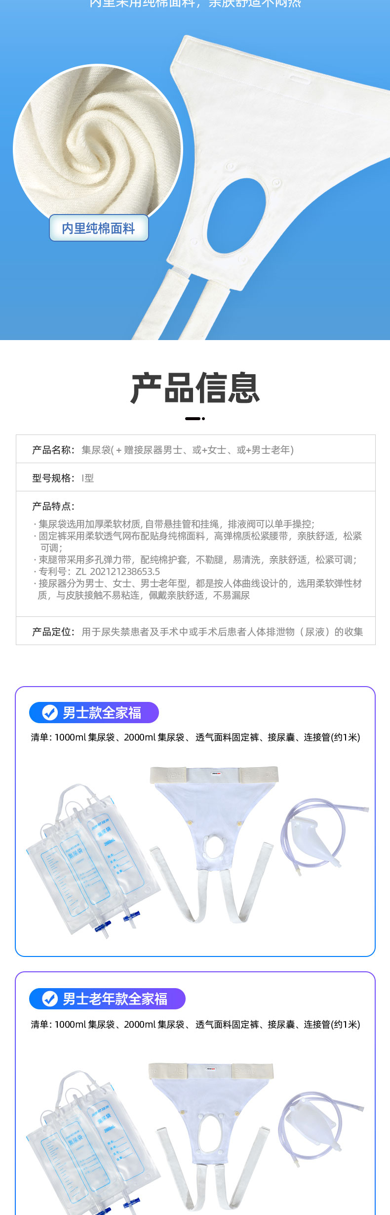 產(chǎn)品名稱:集尿袋(+贈(zèng)接尿器男士、或+女士、或+男士老年)